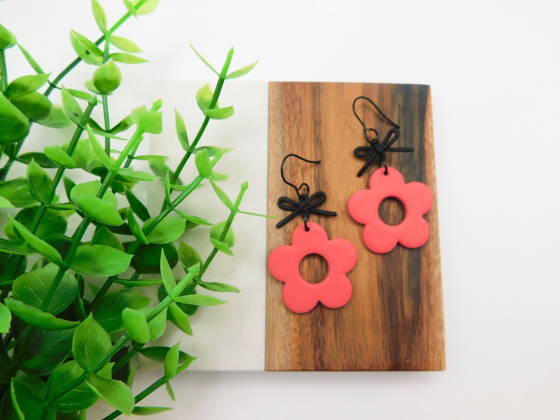Fun, flirty, and full of charm — Josie is the perfect blend of sweet and bold. The open floral design paired with simple black bows and matching hooks makes these earrings effortlessly stylish. Lightweight and handmade, they add just the right amount of attitude to any outfit.