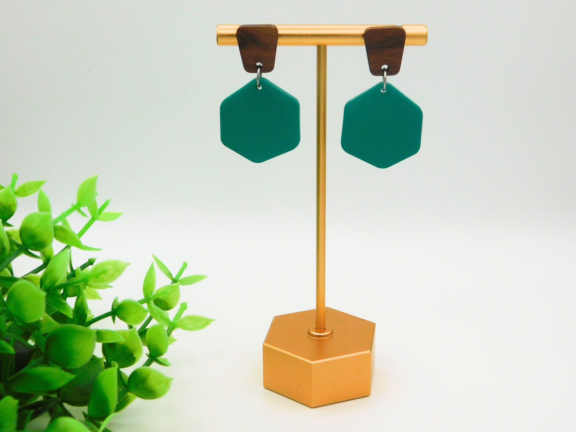 Modern, earthy, and effortlessly cool — Rory brings geometric charm to your everyday style. Featuring a natural wooden trapezoid stud paired with a hexagon drop, these earrings blend clean lines with organic texture. Each pair is lightweight, handmade, and uniquely yours — perfect for adding a warm, modern touch to any outfit.